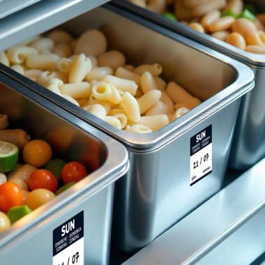 Unverzichtbar in der Lebensmittel- und Gastronomiebranche, wenn es um Hygiene, Qualitätssicherung, Lagerhaltung und Lebensmittelsicherheit geht: eine effiziente und klare Beschriftung mit Tages-Etiketten. Ob Gastronomiebetrieb, Hotel, Bäckerei, Großküche & Kantine, Direktvermarkter auf Wochenmärkten oder Lebensmittelindustrie, die Tages-Etiketten mit Wochentag erleichtern Ihnen und Ihren Mitarbeitern die Nachverfolgung von Verbrauchs-, Herstellungs- oder Öffnungsdaten von Lebensmitteln. Dank eines Farbcodes pro Tag erkennen die Teams auf einen Blick, welche Produkte vorrangig verwendet werden müssen. Dies trägt dazu bei, Lebensmittelabfälle zu reduzieren und eine optimale Rotation der Lebensmittel zu gewährleisten. Die Verwendung von Tages-Etiketten bedeutet eine tägliche Zeitersparnis bei gleichzeitiger Gewährleistung einer einwandfreien Servicequalität im Rahmen des HACCP-Standards und lässt sich perfekt in die Arbeitsabläufe Ihrer Küche oder Produktion integrieren. Die Papier-Etiketten sind einfach und schnell mit jedem beliebigen Stift beschreibbar, einfach Datum und/oder Inhalt aufschreiben. Die Etiketten haften zuverlässig auf den verschiedensten Oberflächen, nach Verwendung können die Etiketten dank des ablösbaren Spezialklebstoffs ohne Rückstände abgezogen werden - ideal zur hygienischen Reinigung. Die jeweilige Wochentag-Beschriftung wird auf Deutsch, Englisch, Französisch, Italienisch und Niederländisch angegeben. Dank der praktischen, stabilen Spenderbox können die Etiketten auf Rolle schnell und einfach entnommen und sauber aufbewahrt werden. Die Tages-Etiketten aus Papier sind für den indirekten Kontakt mit Lebensmitteln geeignet. Die Lebensmittel-Kennzeichnung ist gesetzlich durch die EU-Verordnung (EG) Nr. 852/2004 und der LMHV (Lebensmittelhygieneverordnung) geregelt: Unternehmen und Betriebe, die mit leicht verderblichen Lebensmitteln umgehen oder Lebensmittel herstellen, müssen ein Hygienekonzept (HACCP) umsetzen und dokumentieren. Unsere Tages-Etiketten für Lebensmittel helfen Ihnen, in Ihrem Betrieb die strengen Hygiene- und Qualitätsstandards einzuhalten - und das effizient, klar ersichtlich und ohne großen Aufwand.